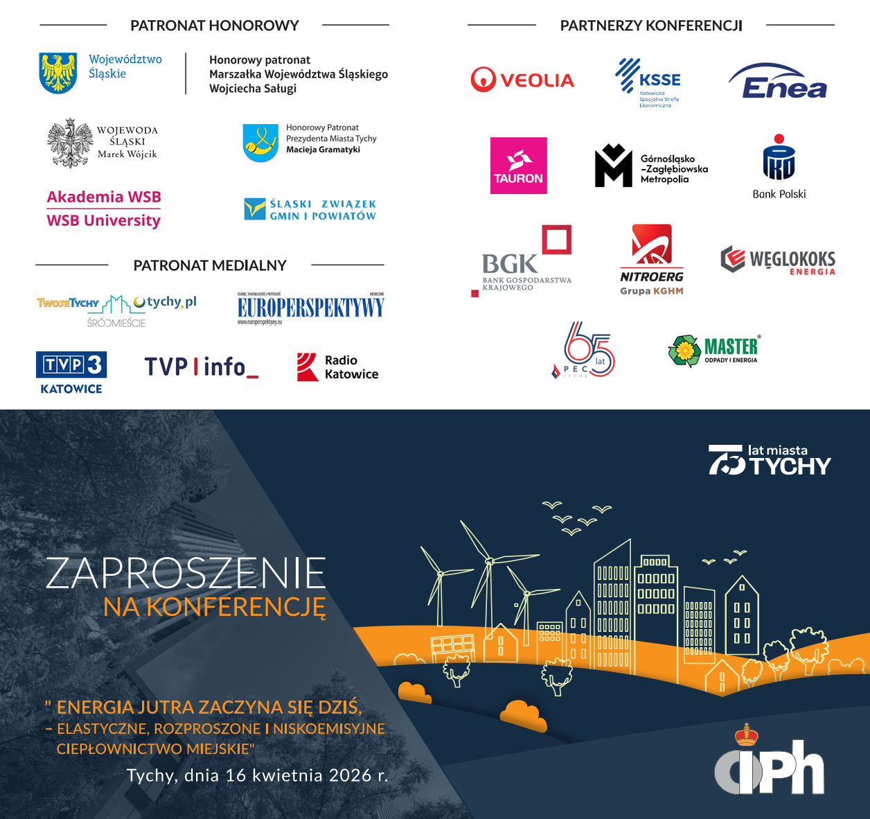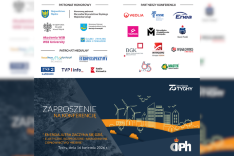 Uprzejmie informujemy, że Śląski Związek Gmin i Powiatów objął patronatem honorowym V Konferencję Energetyczną pt. „Energia jutra zaczyna się dziś – elastyczne, rozproszone i niskoemisyjne ciepłownictwo miejskie”, organizowaną w dniu 16 kwietnia 2026 r. w tyskiej Mediatece. Organizatorem wydarzenia jest Okręgowa Izba Przemysłowo-Handlowa w Tychach.